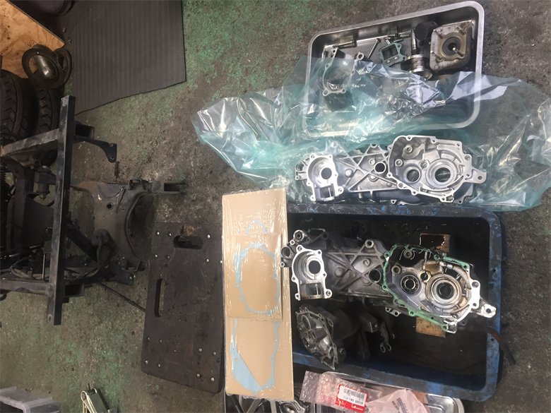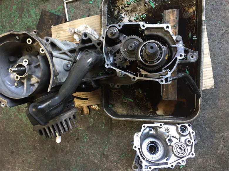 デファレンシャルギア・ベアリングの交換とクランクケース左側の摩耗により異音(カーカー音)のため交換、クランクケース右も摩耗により交換です。